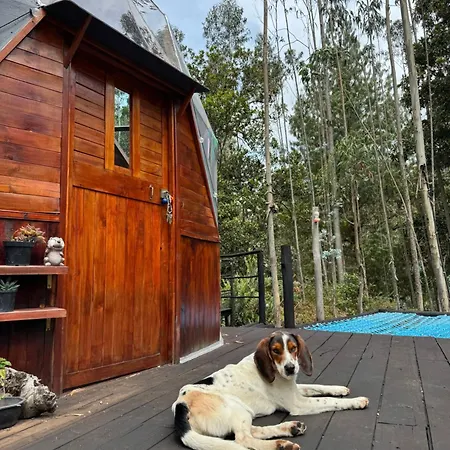 Hotel La Roca Glamping Arcabuco s výhledem na vnitřní dvorek nabízí horkou lázeň, patio a místo na piknik.