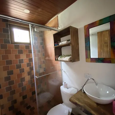Sommige kamers van La Roca Glamping Hotel Arcabuco hebben een patio, een open haard en een zitruimte. De aparte badkamers zijn ook voorzien van toiletartikelen voor gasten. Er is een uitzicht op de patio.